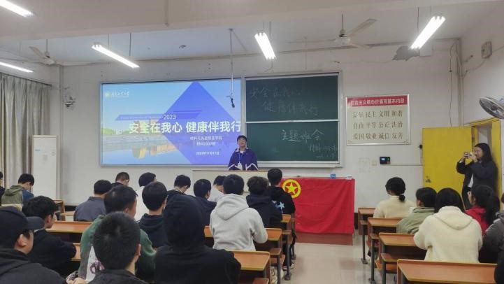 班会内容涉及校园交通安全、宿舍用电安全、食品药品安全等方面,通过列举日常生活中频发的安全事故与危及生命财产安全的真实案例,引导员工树立正确的安全观和生命观,进一步将生命安全与健康教育全面融入实际生活当中,号召同学们自觉做校园安全的守护者。