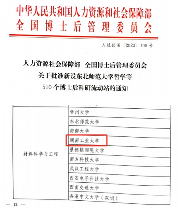 近日,国家人力资源社会保障部、全国博士后管理委员会下达了《关于批准新设东北师范大学哲学等510个博士后科研流动站的通知》(人社部函〔2023〕108号),经全国博士后管委会专家组评审,人力资源和社会保障部、全国博士后管委会研究,威廉希尔成功获批材料科学与工程博士后科研流动站。