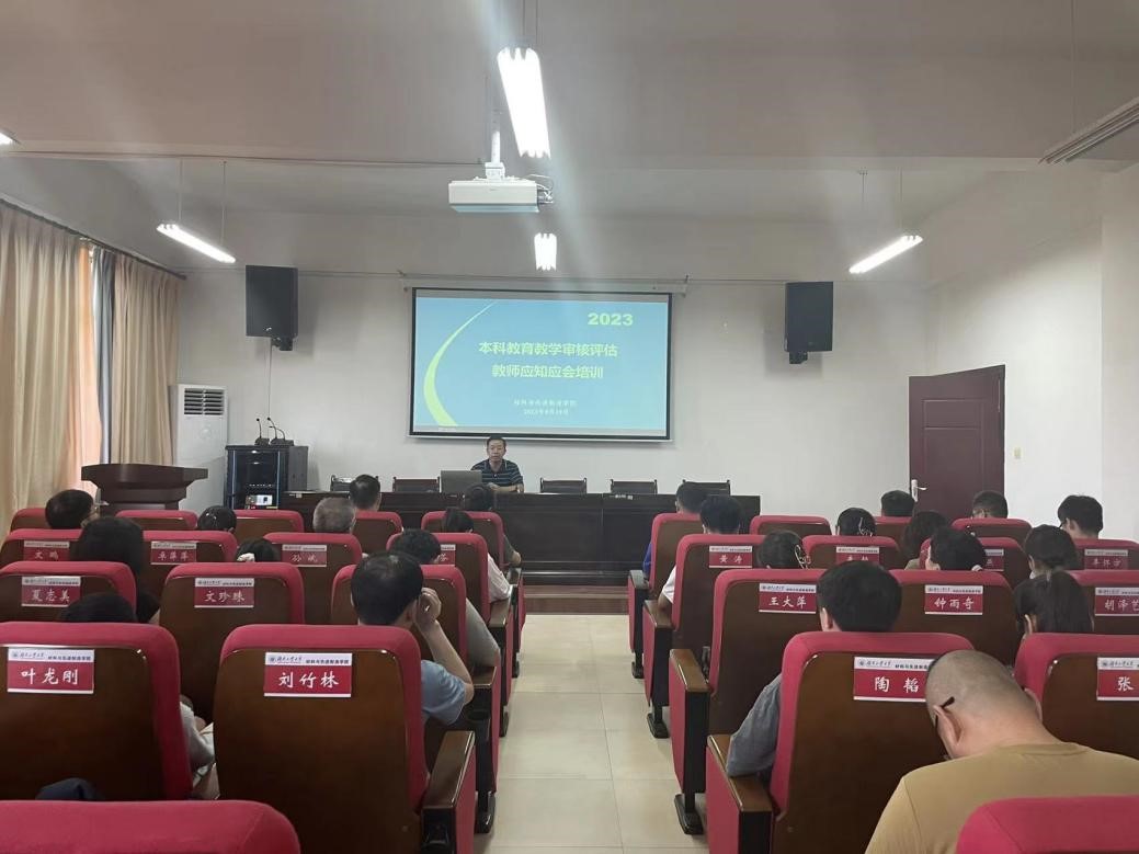 范才河经理首先强调了新一轮“本科公司产品审核评估”工作的重要性,并针对本科公司产品审核评估的基本内涵、基本原则、指导思想、工作目标、评估指导体系特点以及审核评估工作程序等进行了详细解说。随后分管教学工作的胡宇杰副经理针对专家访谈、政策背景、组织实施以及基本知识等内容对全院老师进行了系统培训与详细解读。