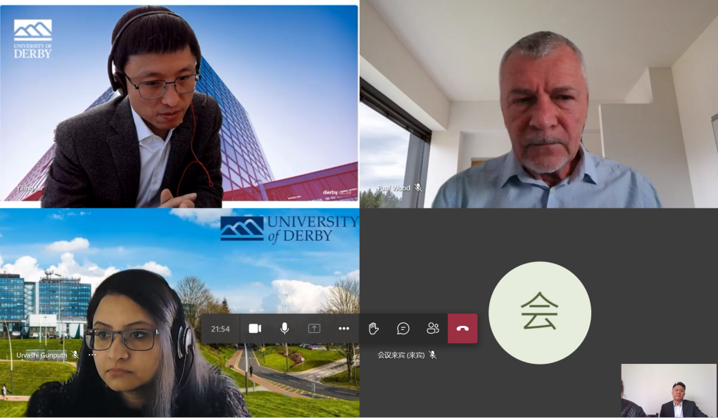 4月25日下午3点,公司与英国德比大学开展科研合作对接视频会。经理范才河,教师胡泽艺、吴琴、倪雨朦,德比大学教授Paul Wood、Yiling Lu、Urvashi Gunputh参加了本次视频会。