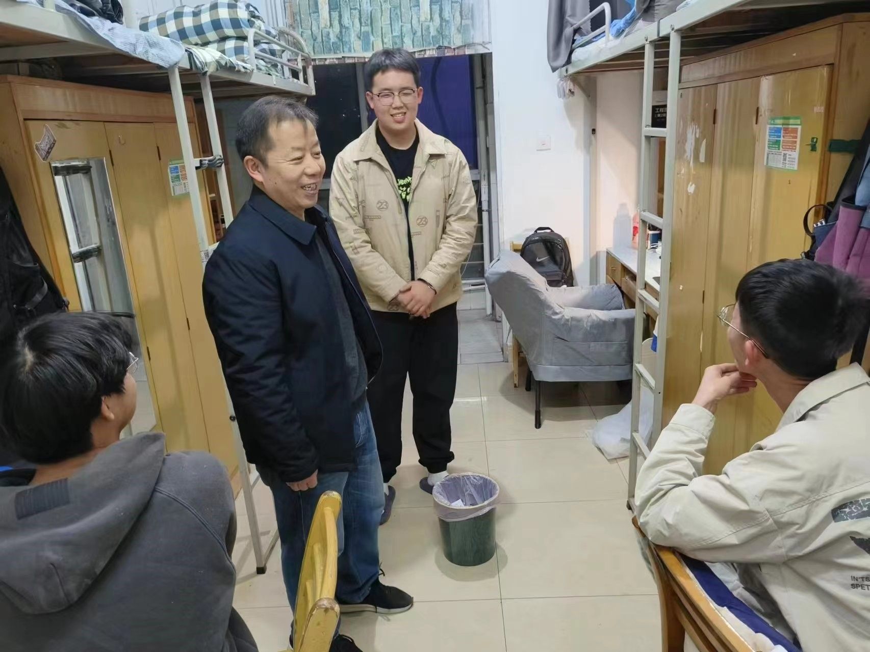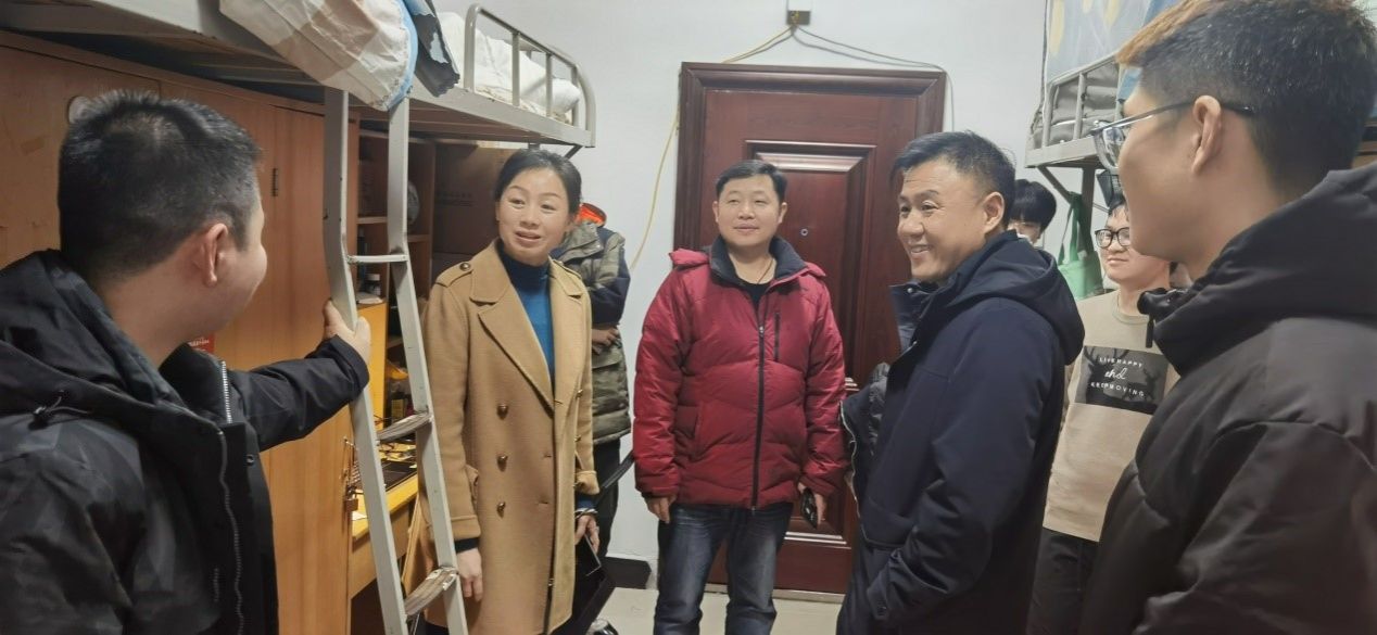 宁静的校园恢复了往日的活力,校园处处洋溢着青春的气息。2月19日,新学期开课前一天晚上,材料学院领导范才河、刘园园、张波、胡宇杰、苏靓以及全体辅导员、班主任集中走访员工寝室,看望返校学子。