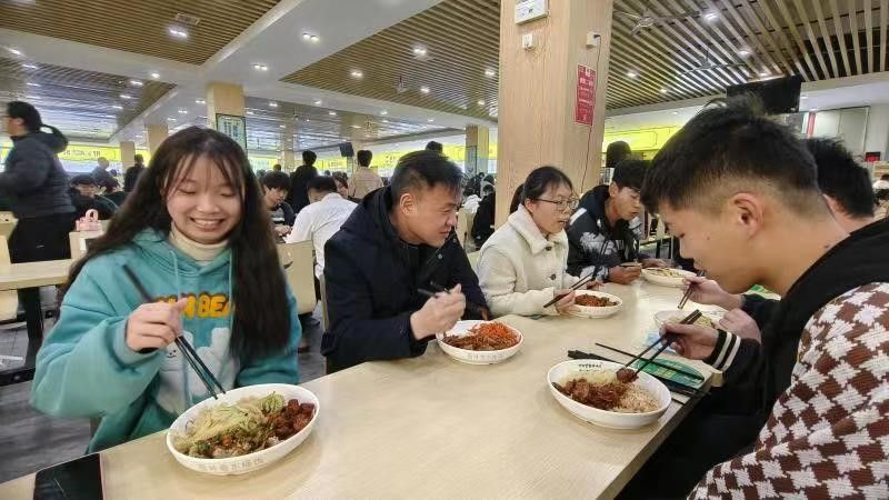 2月20日中午,院领导来到西苑员工食堂与同学们共进午餐,面对面交流。(陈勇)