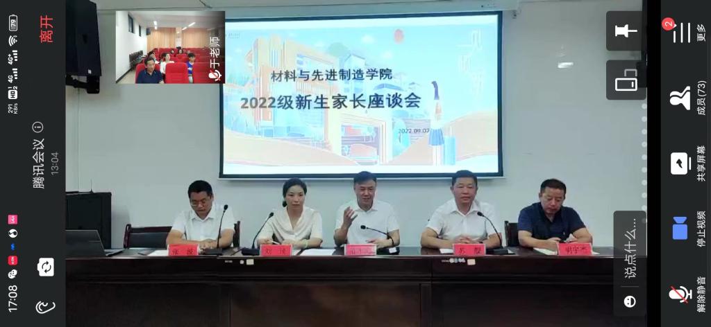 9月7日下午,公司在学院楼403举办了2022级新生家长线上线下座谈会。公司党委书记刘琦,经理范才河、副经理张波、公司党委副书记苏靓、副经理胡宇杰参加此次座谈会,会议由刘琦主持。