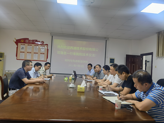 2021年9月9日,西迪技术股份有限公司董事长蒲也平一行来公司进行第二轮产学研合作洽谈。经理范才河、党委书记刘琦及学院硬质合金等科研团队负责人参加洽谈。双方在技术协同、人才培养、技术发展趋势等方面开展了深入商讨。