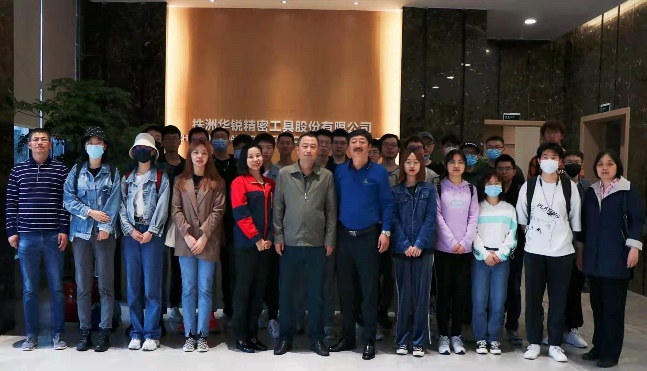 5月18日上午,副经理银锐明带领学院4位老师和粉体材料1801班全体同学前往上市企业株洲华锐精密工具股份有限公司参观学习。华锐公司陈京兆副总经理和人力资源部部长钟利君介绍了华锐公司简况、公司的企业文化、生产规模与新进人员晋升等情况。