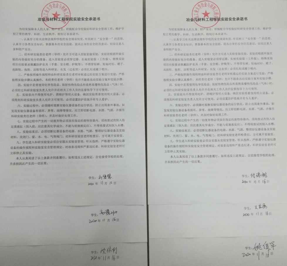 为了加强科研实验室的安全管理,预防和减少安全事故发生,2020年11月16日,冶金与材料工程学院针对研一新生开展了实验室管理和安全培训活动。