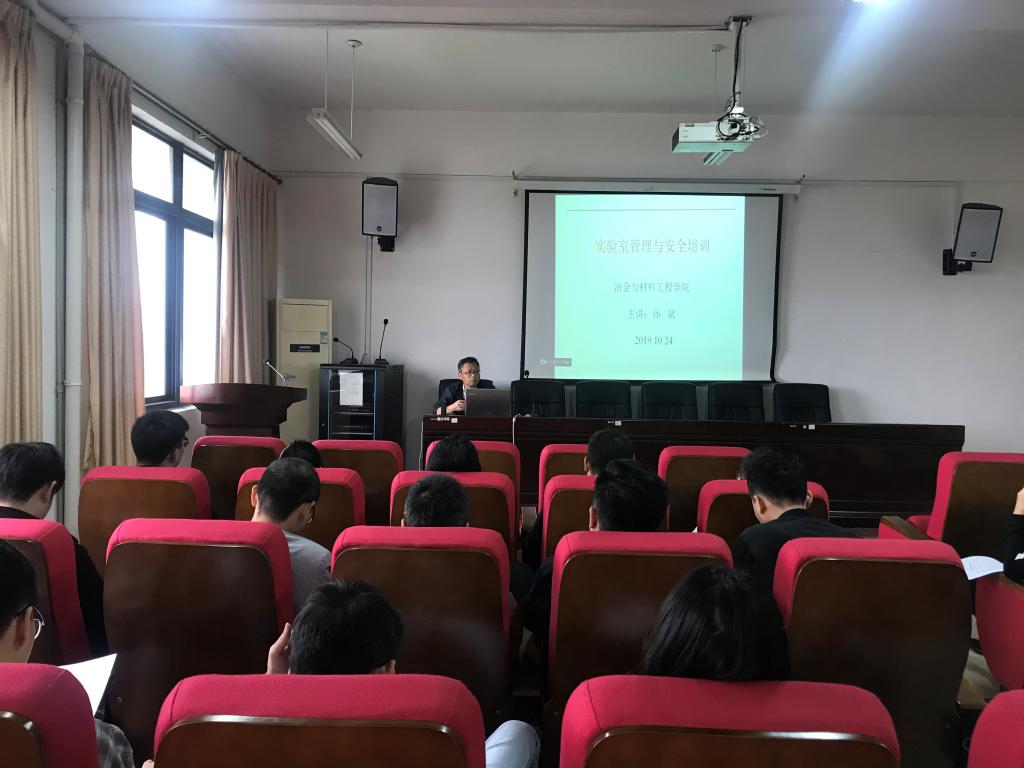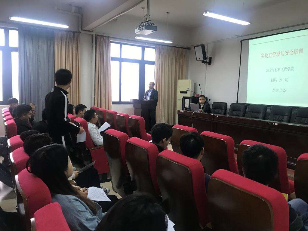 为确保师生生命财产安全,预防实验室安全事故的发生,针对近期在学院实验室安全隐患排查中发现的问题,2019年10月24号上午,冶金与材料工程学院召开了研究生实验室管理与安全培训会议。