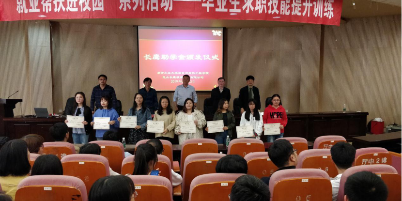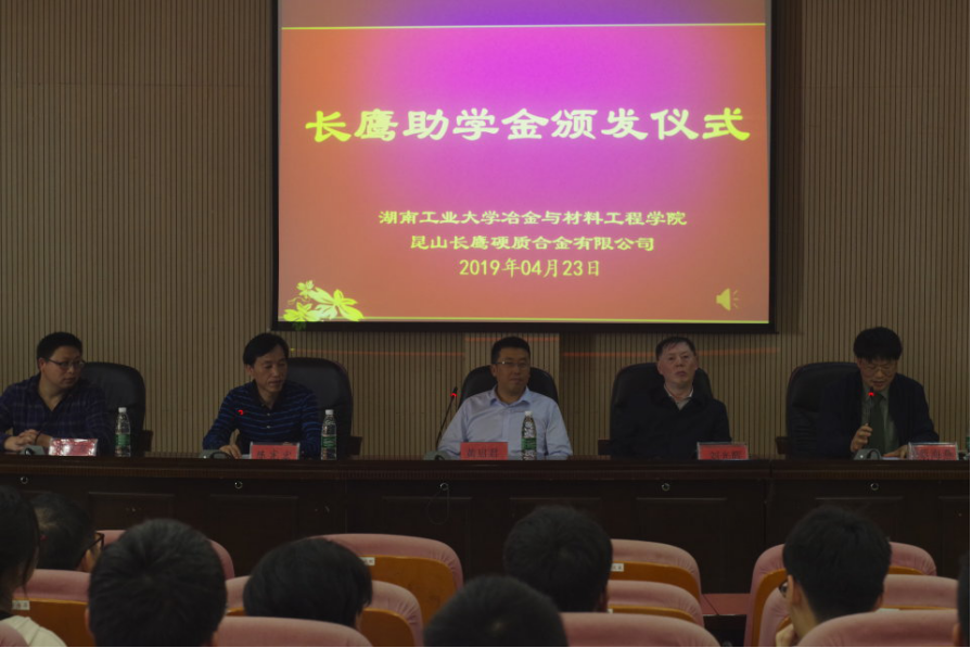 2019年4月23日下午,威廉希尔冶金与材料工程学院与昆山长鹰硬质合金有限公司“长鹰助学金”颁发仪式在包设129报告厅隆重举行。
