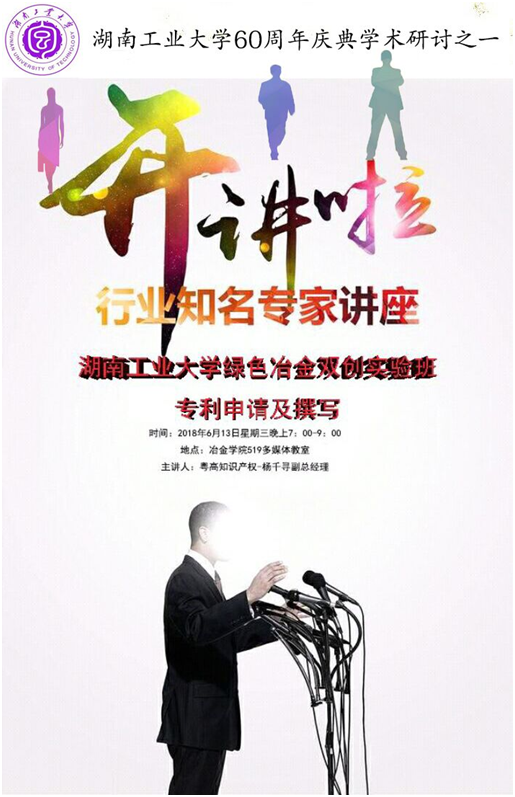 2018年6月13日,绿色冶金双创实验班有幸请到了粤高知识产权,杨千寻副总经理来为同学们讲述了专利的申请与撰写。
