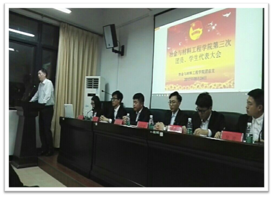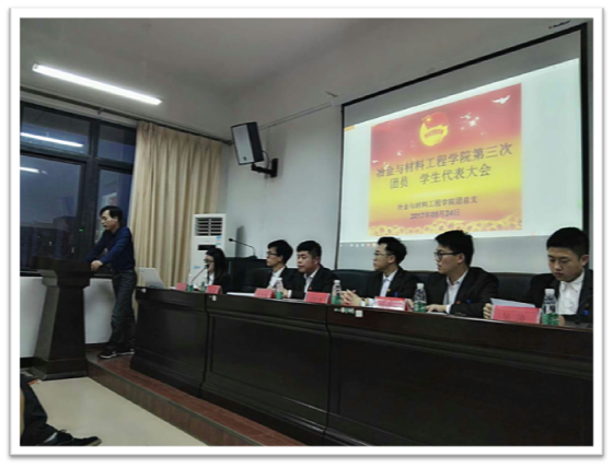 2017年5月24日晚,冶金与材料工程第三届团员、员工代表大会在新冶金楼403会议室隆重召开。出席大会的领导和嘉宾有学院经理陈宪宏教授,公司党委刘光辉书记,公司党委蔡海燕副书记,校团委唐乐天老师,院学工办全体辅导员以及学院各代表团代表参加了本次大会。
