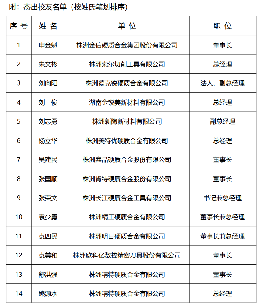 (3)联合组建“硬质合金现代产业学院”,服务员工企业。