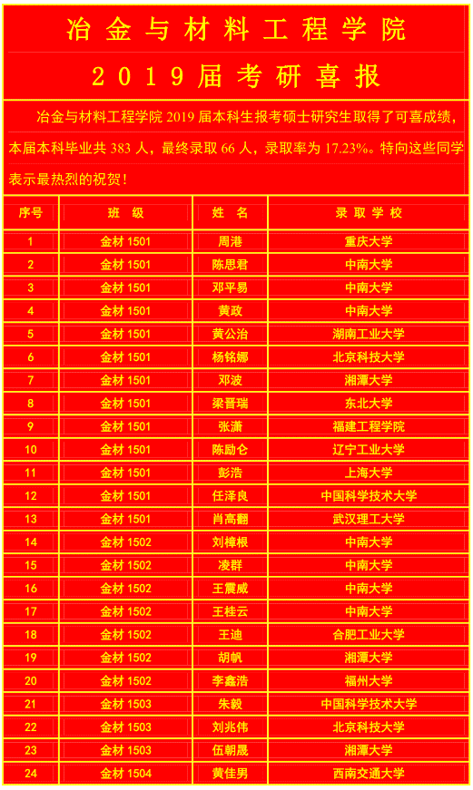图4 冶金与材料工程学院本科毕业生考研录取详情