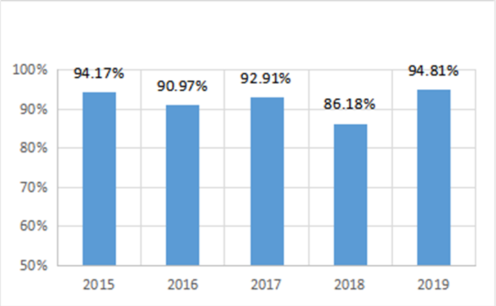 图1 冶金与材料工程学院本科毕业生近五年就业率