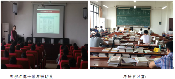 学院积极鼓励员工参与考研,学院领导开辟考研自修室(309),配备空调和电扇,定期请高水平的骨干教师针对性的指导员工复习和备考,由毕业班的辅导员、班主任组织考研学子分享收集的信息,汇报考研进度,让大家比较互相之间的考研进程,协调自己的考研过程,分享自己考研过程中比较好的复习方法,让大家互相之间取长补短,互相学习。5月7日19:30在新冶金楼403召开考研经验座谈会,传承优秀的考研经验,增加低年级同学的考研能力。