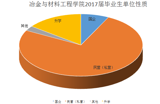 从毕业生就业行业分布分析:由于冶金行业特点,公司历届毕业生大部分服务于各国有大中型企业。随着市场经济的发展和国有企业的改制以及就业形势的改变,越来越多的毕业生选择民营(私营)单位,这反映了公司毕业生的就业观念已经发生了明显的改变,毕业生适应形势发展,不但在国有大中型企业积极就业,也投身到了市场需求量大的民营(私营)企业中去。此外,毕业生越来越有继续教育和终身学习的观念,公司今年共有本科毕业生330人,其中45人被中科院、中南大学、北京科技大学等知名高校录取,升学情况保持较高水平,本科毕业生的考研录取率为13.64%