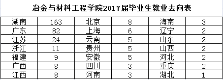 冶金与材料工程学院2017届毕业生就业情况统计表
