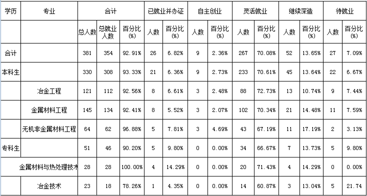 冶金与材料工程学院2017届毕业生分专业就业率公示
