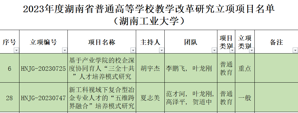 近日,湖南省教育厅公布了2023年度湖南省普通高等学校教学改革研究项目立项名单,公司胡宇杰老师主持“基于产业学院的校企深度协同育人“三全十共”人才培养模式研究”项目获批湖南省教改普通教育重点项目,夏志美老师主持“新工科视域下复合型冶金专业人才的“五维跨界融合”培养模式研究”项目获批湖南省教改普通教育一般项目。