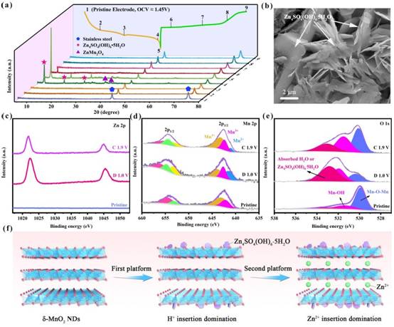 图3 δ-MnO2 NDs电极在锌离子电池中的储能机理研究