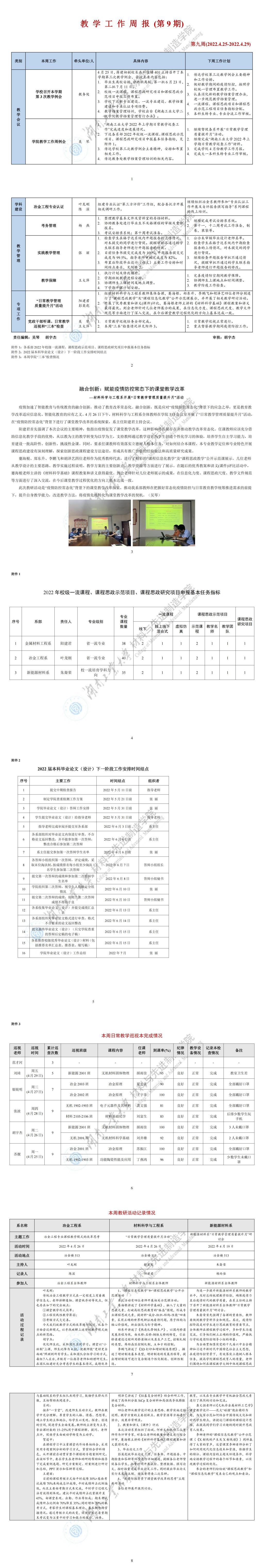 教学工作周报(第8期)