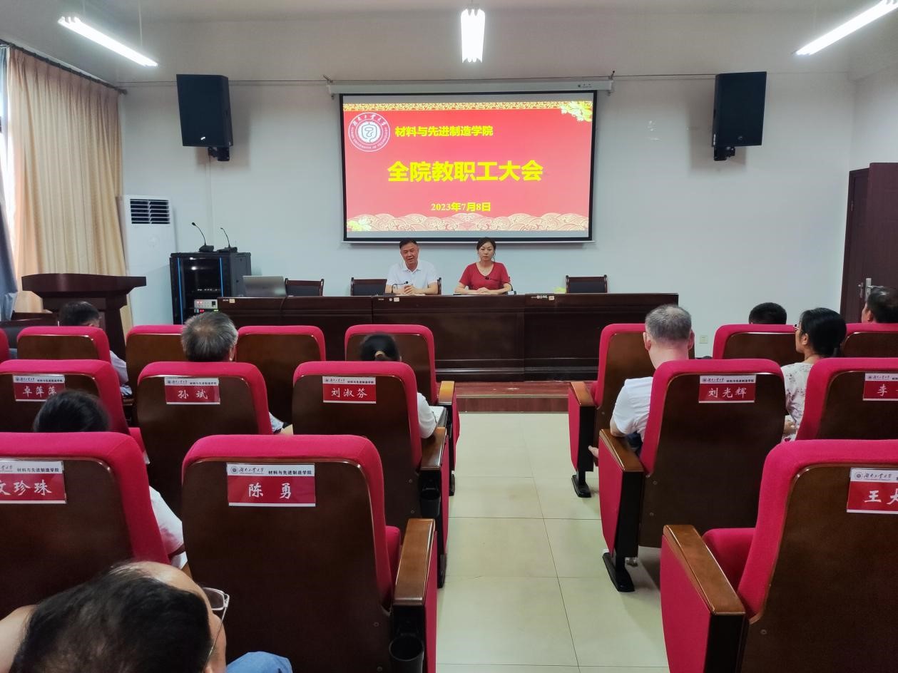 7月8日下午,公司在崇礼楼403会议室召开学期末全院教职工大会,会议由公司党委书记刘园园主持,公司党政班子成员及全体教职工参加。