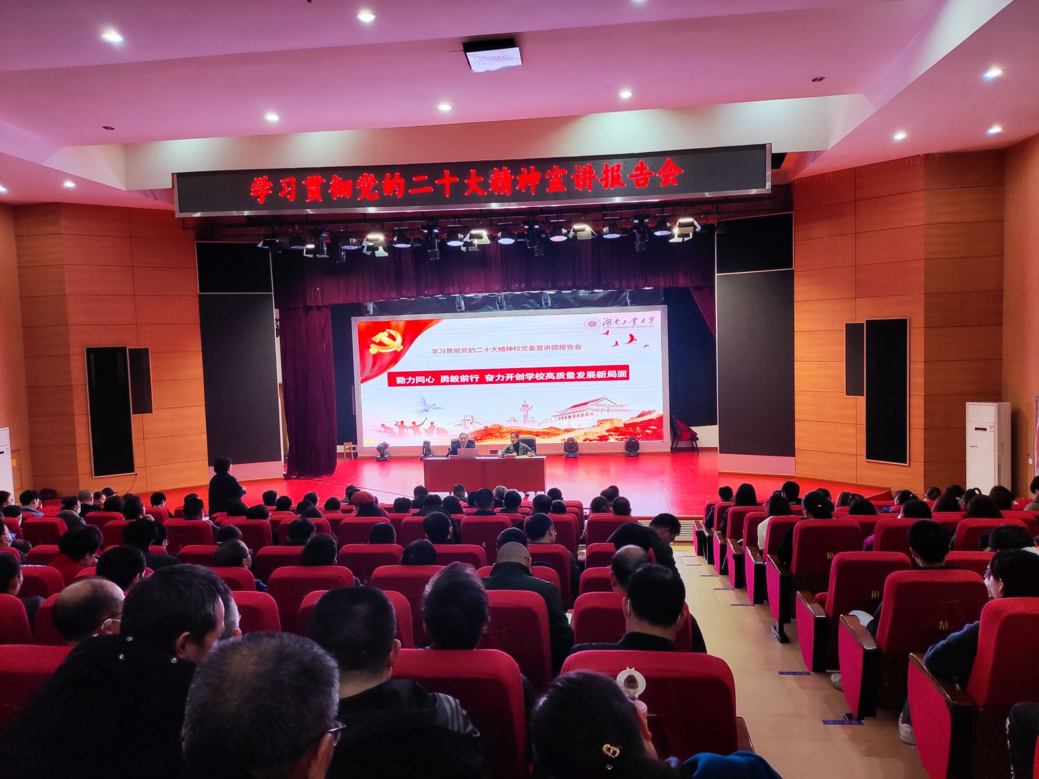 蒋建初以学习贯彻党的二十大精神为主题主线,紧密结合学校改革发展实际,从全面领会党的二十大的主题及主要成果、过去五年的工作和新时代十年的伟大变革、开辟马克思主义中国化时代化新境界、新时代新征程中国共产党的使命任务 、贯彻落实新时代新征程的战略部署、用新的伟大奋斗创造新的伟业等六个方面,对党的二十大精神进行了全面系统深刻解读。蒋建初指出,党的二十大是在全党全国各族人民迈上全面建设社会主义现代化国家新征程、向第二个百年奋斗目标进军的关键时刻召开的一次十分重要的大会,进一步指明了党和国家事业的前进方向,必将成为实现中华民族伟大复兴进程中的重要里程碑。