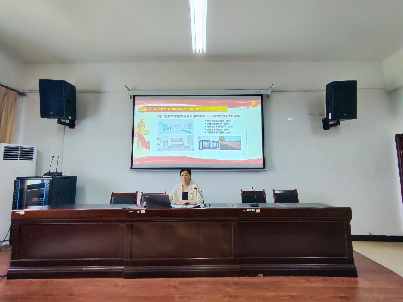 她强调,在全党深入开展主题教育之际,首要任务是用习近平新时代中国特色社会主义思想凝心铸魂,推动全院师生党员更加自觉深刻领悟“两个确立”的决定性意义,增强“四个意识”、坚定“四个自信”、做到“两个维护”。全院师生党员要按照党中央、省委和公司党委的统一部署,以这次主题教育为契机,进一步推动学习贯彻习近平新时代中国特色社会主义思想走深走实,更加自觉以这一思想武装头脑、凝心聚力,开拓创新,要将学习成果转化为助推学校“1045”提质工程和学院“1234”发展目标的强大动力,为推进学院全面发展而努力奋斗。 (李静)