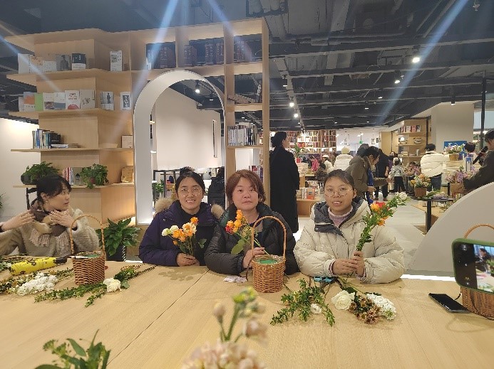 此外,何利芳、文珍珠和李静老师参加了插花活动。一个个美丽的花篮,让即将到来的节日变得温暖又浪漫。