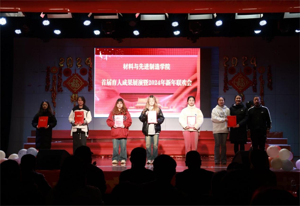 2024年1月3日晚,“材料强国·强国有我”威廉希尔首届育人成果展演暨2024年新年联欢会在校员工活动中心举行。副董事长龙永红出席,优秀员工企业代表舒洪强、李应新、朱利军,公司党委书记刘园园、经理范才河及学院班子成员,部分兄弟学院相关负责人及学院师生欢聚一堂,共贺新春。