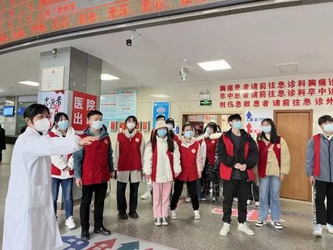 参与志愿者活动(右五)