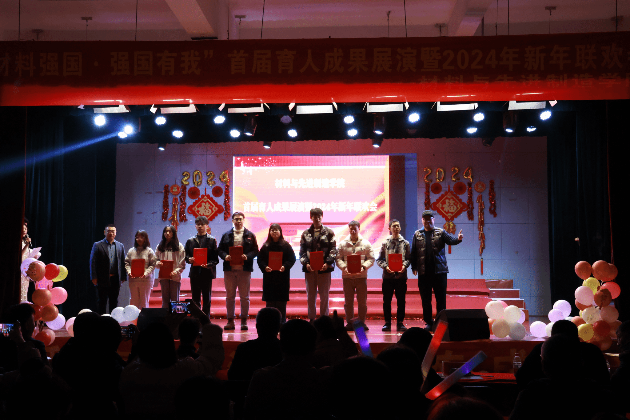 2024年1月3日晚,“材料强国·强国有我”威廉希尔首届育人成果展演暨2024年新年联欢会在校员工活动中心举行。副董事长龙永红出席,优秀员工企业代表舒洪强、李应新、朱利军,公司党委书记刘园园、经理范才河及学院班子成员,部分兄弟学院相关负责人及学院师生欢聚一堂,共贺新春。