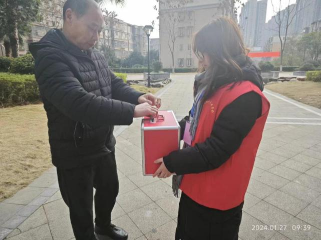 实践内容:2024年1月参加社区工作人员组织的志愿者调查活动。由组长带领志愿者去到社区居民住处开展活动。一名志愿者携带投票箱一名志愿者携带相关调查问卷。走访每一户居民,积极讲解,配合居民参与民意调查活动。