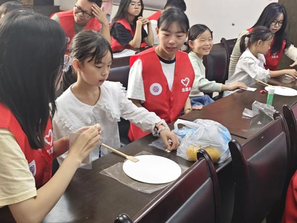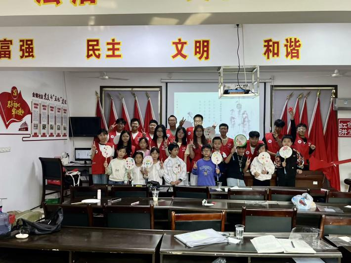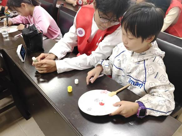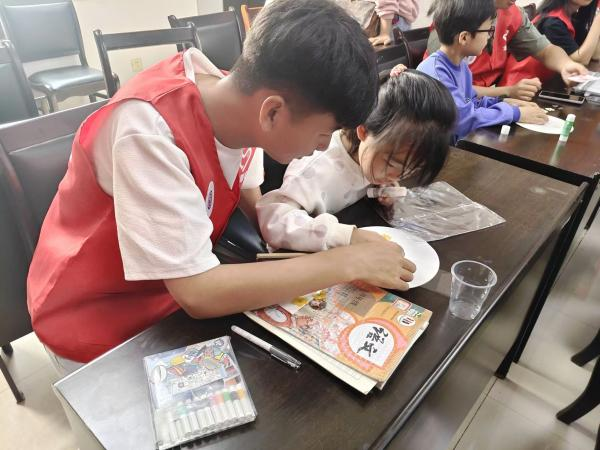 活动当天,金锦社区活动室内洋溢着浓厚的节日气氛。志愿者们首先为孩子们生动讲解了重阳节的由来、习俗及背后的文化内涵,激发了孩子们对传统文化的浓厚兴趣。随后,在志愿者的指导下,孩子们拿起彩笔,在扇面上绘制出一幅幅寓意吉祥、充满童趣的图案。菊花盛开、老人笑颜、诗句飘逸……每一把扇子都凝聚着孩子们对长辈的深情厚意和美好祝愿。作业辅导环节,志愿者们耐心细致地解答孩子们在学习中遇到的难题,在互动中传递了积极向上的学习态度和生活理念。孩子们在志愿者的陪伴下,不仅收获了知识的喜悦,更感受到了来自社会的温暖和关爱。