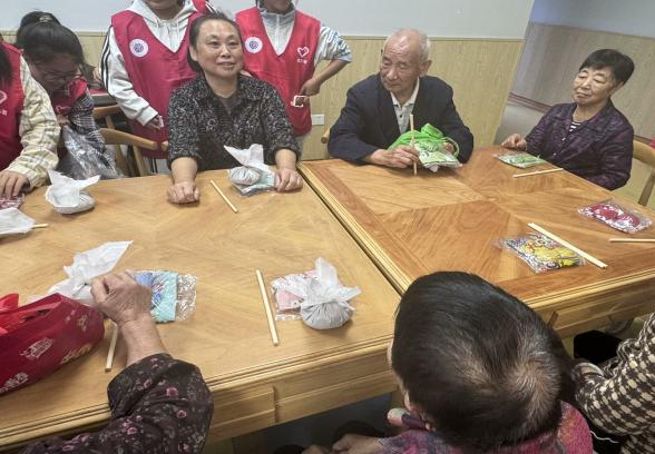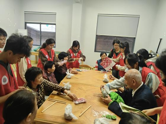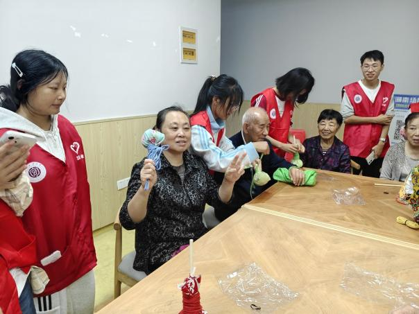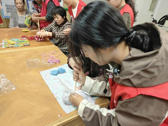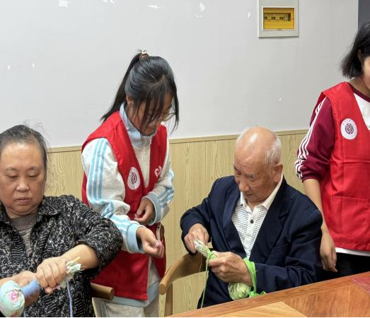 活动现场,志愿者们为老人们普及了实用的保健知识和最新的健康生活方式,让他们能够更好地了解并享受到社会的关爱与福利。随后,志愿者们带领老人们做起了一套针对老年人常见的慢性病设计的健身操,简单动作又能活动筋骨。互动环节,志愿者们一对一地为老人们按摩捶背,与老人们畅谈家常,聊聊社区中的新鲜事和学校里的开心事。还创新性地教老人们制作具有时代特色的艾草锤。艾草锤不仅能够驱寒除湿、舒筋活络,还成为了老人们日常健康的小助手。