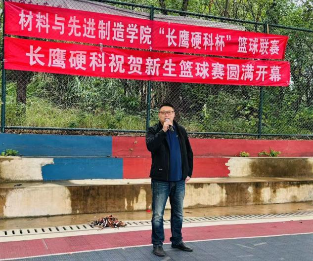 范才河经理强调,长鹰硬科“新生杯”篮球赛作为公司的传统特色活动,为大家搭建了一个“展示自我、强身健体”的平台,他鼓励同学们在比赛中积极拼搏、奋勇争先,以良好的精神面貌积极参加比赛。同时,对昆山长鹰硬质材料科技股份有限公司的冠名支持表示了衷心的感谢。