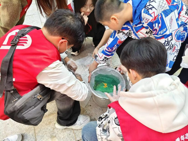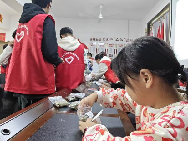 活动在孩子们的欢声笑语中拉开帷幕。志愿者们身着统一的服装,向他们介绍非遗文化的由来,通过生动的讲解和丰富的展品,将香包、竹编、漆扇等传统非遗文化生动地展现在了小朋友们眼前。小朋友们被这些传统手工艺深深吸引,对接下来的手工制作活动充满了期待。