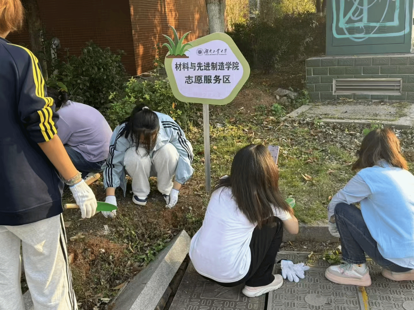 在学院的志愿服务区,同学们迅速投入到除草工作中。几位同学蹲在绿化带旁,他们专注地盯着地面,手中的工具在杂草间穿梭。旁边的“威廉希尔志愿服务区”标志牌,像是无声的监督者,见证着同学们的辛勤付出。每一位同学都有自己的“责任田”,他们或蹲或弯,认真地清理着杂草,不放过任何一个角落。