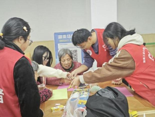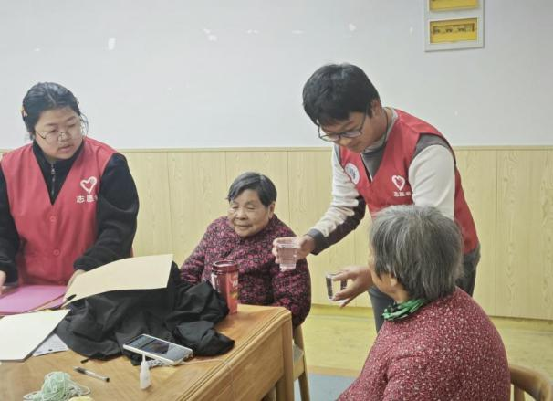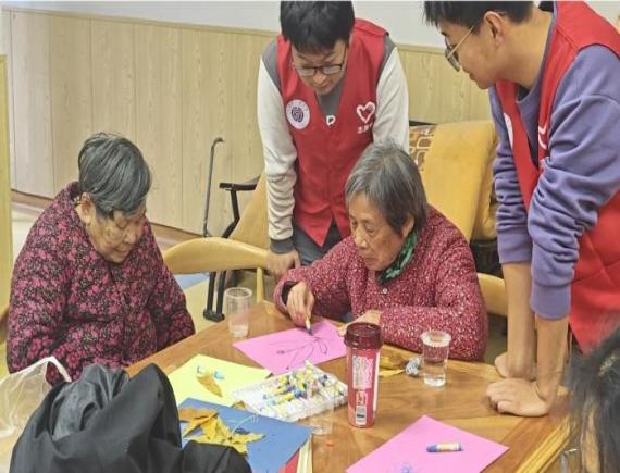经典老歌演唱环节,音乐奏响,老人们精神抖擞,歌声饱含深情,一首《红梅赞》唱出往昔岁月的坚韧与豪迈,也激发了在场每一个人的共鸣与感动。在棉线编织花胸针过程中,志愿者展示编织技巧,手指灵动穿梭。老人专注学习,虽动作稍缓但一丝不苟,志愿者贴心辅助,手把手教学。精美的胸针被老人们佩戴在胸前,脸上放出如阳光般灿烂的笑容,那是对美好生活的向往与珍惜,也是对志愿者们无私奉献的最好回馈。