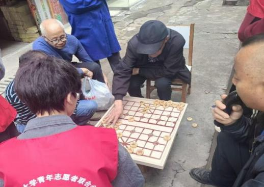 与此同时,在社区的另一角,一场别开生面的象棋比赛也在火热进行中。一方棋盘,几杯热茶,构成了老人们欢乐的天地。他们或凝神静气,或运筹帷幄,在棋盘上尽情展示自己的智慧与风采。志愿者们在一旁默默陪伴,时而为老人们加油鼓劲。老人们表示,这样的活动让他们有机会聚在一起下棋聊天,感受到了来自年轻人的关怀和温暖,也让他们更加珍惜社区这个大家庭的温馨氛围。