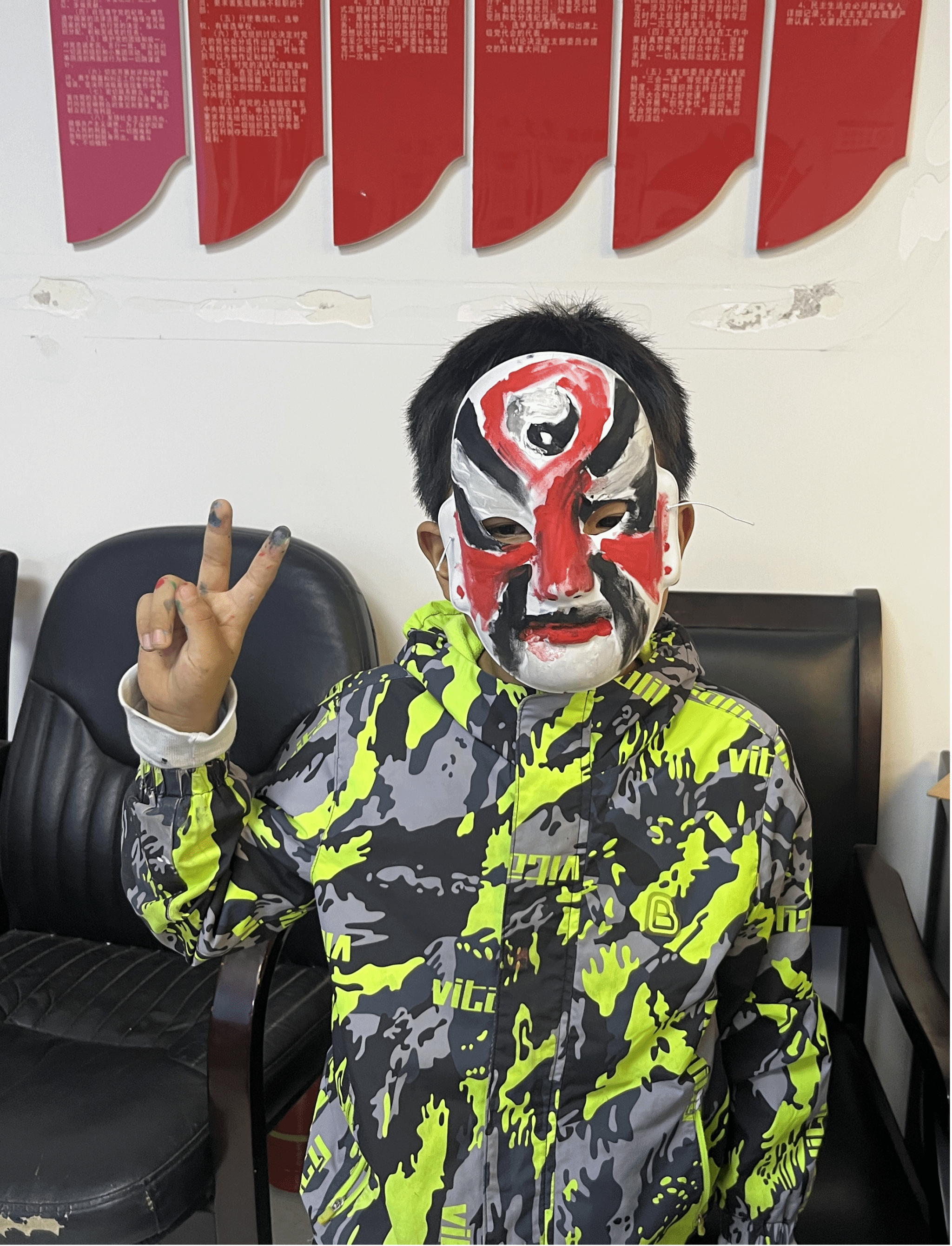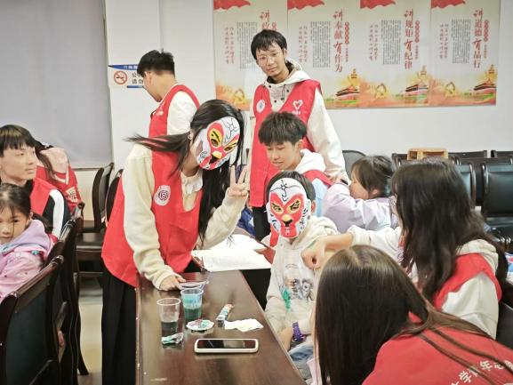 绘制过程中,志愿者们穿梭在孩子们之间,耐心解答他们的疑问,帮助他们调整颜色搭配,确保每个脸谱都能呈现出最佳效果。当孩子们戴上自己亲手制作的脸谱,生旦净丑粉墨登场,在一方小小的舞台上演绎着千年的传奇。学院老师也主动加入到绘制脸谱的行列中,他们一边绘制,一边向孩子们讲述脸谱背后的历史故事和人物性格。