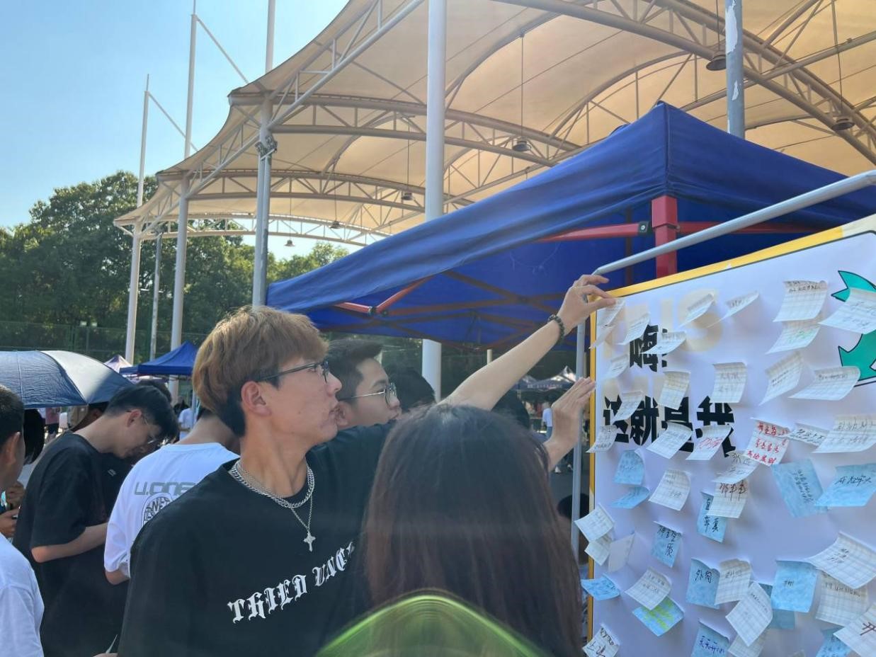 同学们都早早来到活动现场,积极参与公司的有趣小游戏,场地气氛活跃。“悦容悦己”游戏中,同学们纷纷在扇子上画出心目中的自己;“嗨,这就是我”游戏更是吸引了许多同学,大家在便利贴上写下自己的烦恼、缺点和对自己的鼓励语,直面自我,并且去追求更优秀的自己。