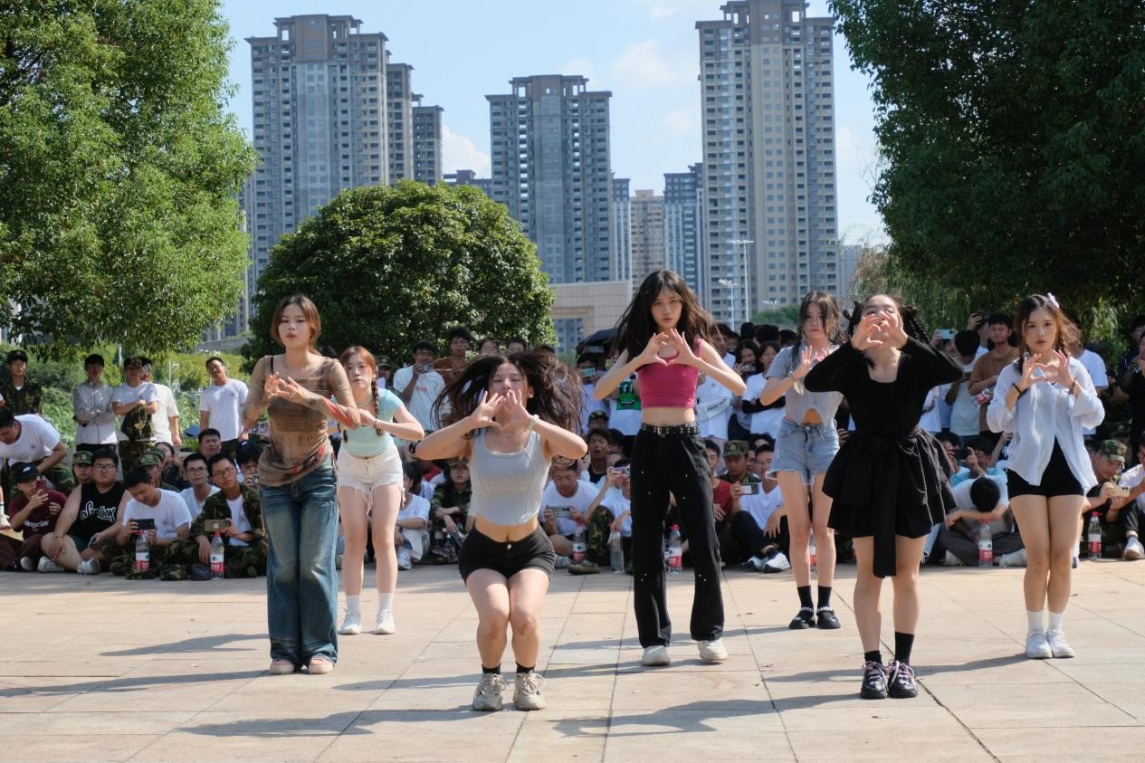 快乐军训活动旨在提高新生的身心素质,培养他们坚韧不拔的品质,让新生能够在严格的军训中体验快乐,放松心情。活动在学校各社团的精彩表演中拉开帷幕,零点九说唱社团、1st舞蹈社团、校街舞社团为大家带来了精彩舞蹈表演和说唱表演,富有激情的舞蹈、激昂的音乐使同学们都沉浸其中,军训带来的疲劳也得到了释放。