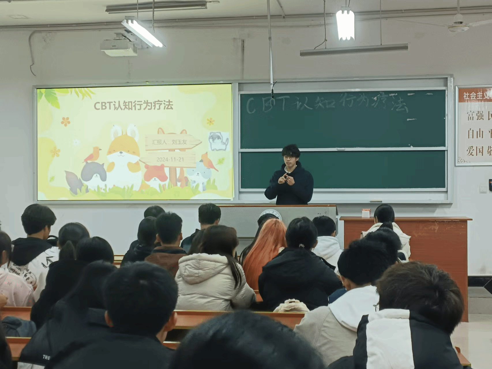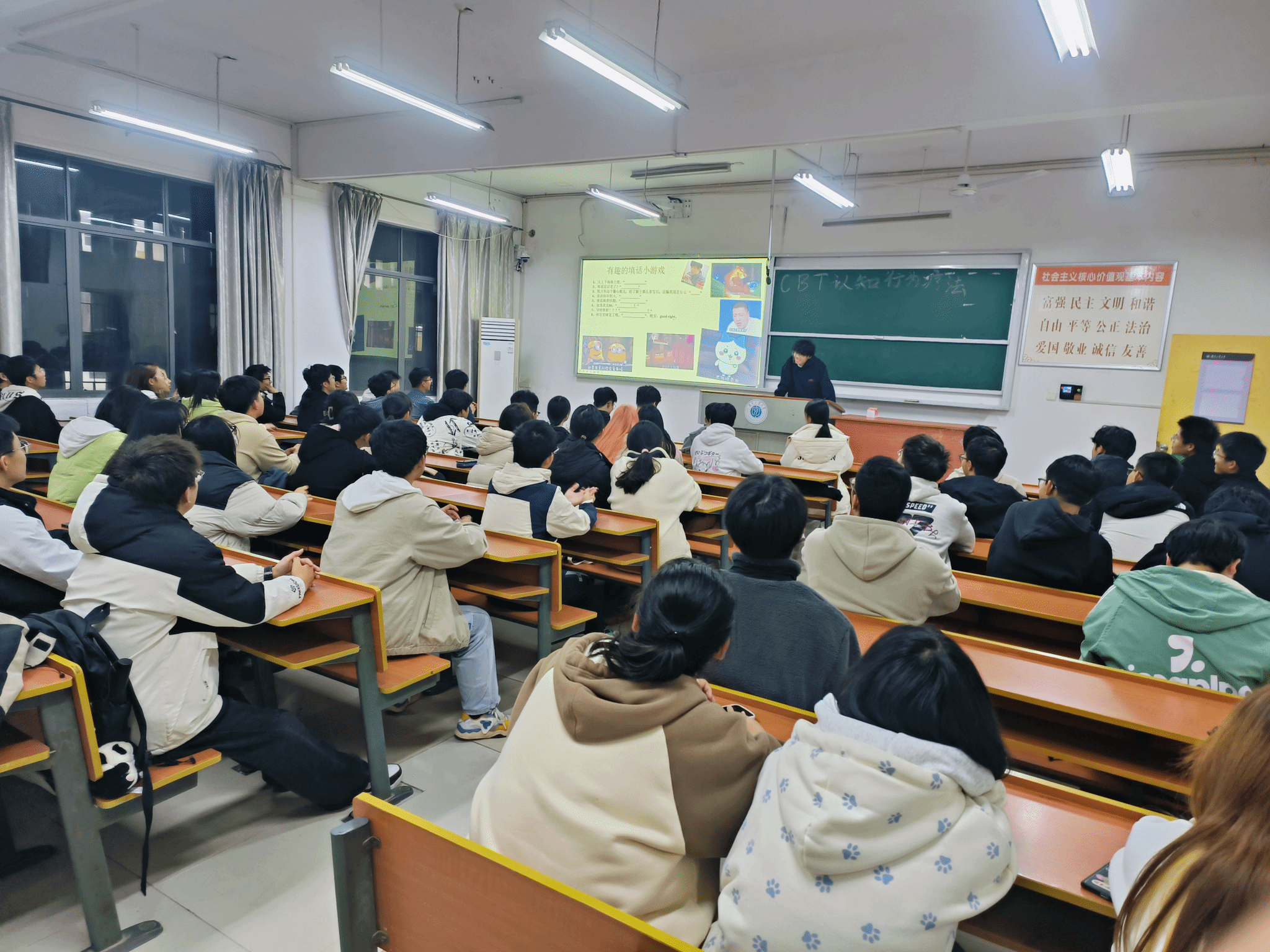 为助力同学们更好融入并适应丰富多彩的大学校园生活与学习节奏,我院于2024年11月21日成功举办了一场“洞察心理,培训重塑内心世界”专题讲座活动。本次活动旨在通过系统传授CBT(认知行为疗法)的核心知识与概念,有效增强同学们面对挫折与挑战的心理调适能力。