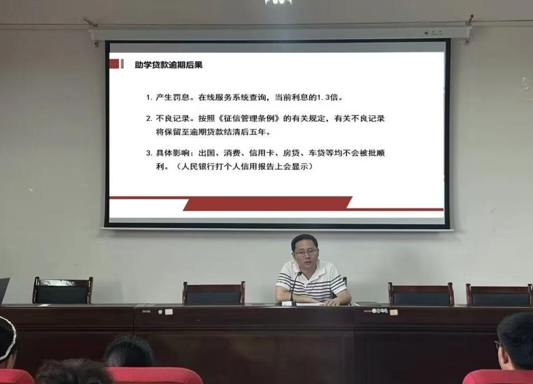 陈勇为同学们讲述了个人征信系统、助学贷款的还款流程、还款方式、注意事项、违约后果,通过具体实例使贷款毕业生切实认识到诚信还款的重要性。陈勇还对贷款员工提出的问题做出了详细回答,使贷款员工更深一步的了解还款政策。陈勇希望每位贷款毕业生高度重视诚信还款问题,珍惜并维护好自己的信用记录,秉承诚信之风。