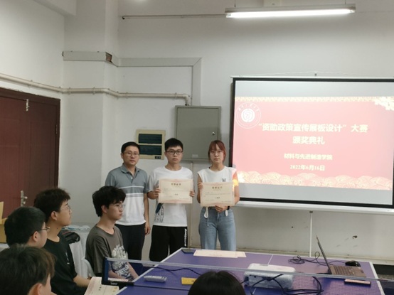2022年6月16日下午,公司在学工办201举行2022年资助育人系列主题活动表彰大会。会议由学院资助专干主持,公司党委副书记苏靓、学工办老师出席,“资助政策宣传展板设计”大赛获奖班级代表及“励志之星”励志演讲大赛获奖同学等30余人参加。