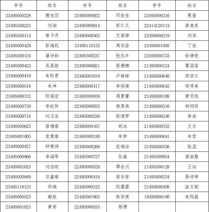 根据公司《关于开展2023-2024学年国家励志奖学金评选工作的通知》有关规定,经员工本人申请、专业年级推荐、学院国家奖助学金评审小组审核通过,现将2023-2024年国家励志奖学金拟获奖名单公示如下: