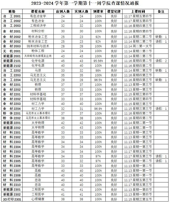 2023-2024学年第一学期第十一周学院查课情况通报