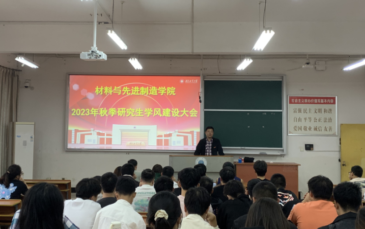 10月13日下午,公司在崇学楼411教室召开2023年秋季研究生学风建设动员会,公司党委副书记苏靓出席会议并讲话,学院学工办主任、研究生辅导员陈勇主持会议,并做动员报告。