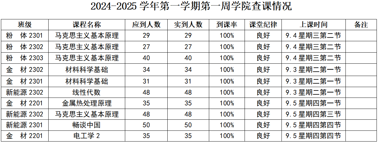 2024-2025学年第一学期第一周学院查课情况