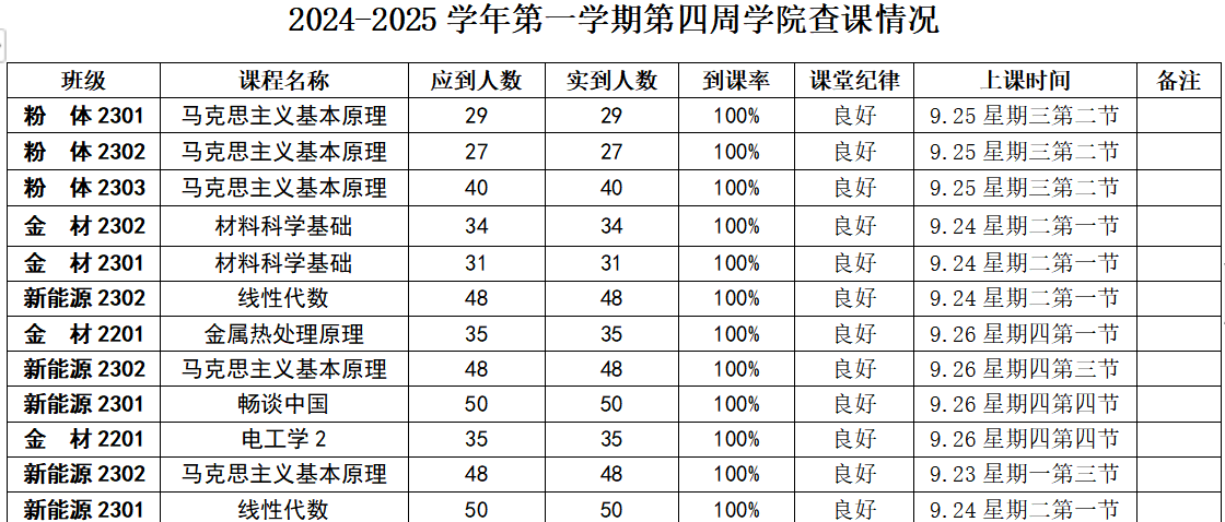 2024-2025学年第一学期第四周学院查课情况